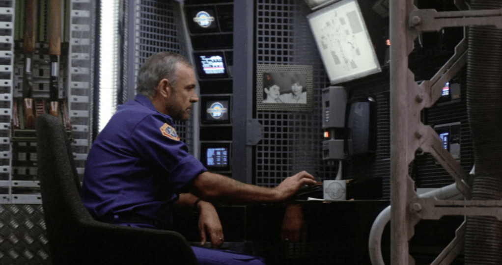 Det finns gott om Alien-vibbar i Operation Outland. Chef för de snygga modellbyggena var Martin Bower, som också jobbat på Ridley Scotts film, och scenografin (särskilt korridorerna och köksinteriörerna) känns oerhört mycket Nostromo. Hela gruvkolonin är befolkad av blue collar-typer som grovarbetarna Brett och Parker i Alien, minus charmen och det godmodiga gnället: här är de flesta sura och lakoniska machomän som ägnar sig åt att kröka och jobba.