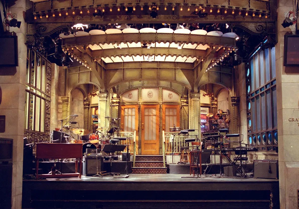 Förlåt mitt tjat om hur studion är uppbyggd – men detta var faktiskt det mest fascinerande under hela kvällen, ursäkta alla legendariska komiker, musiker och skådisar. Jag har aldrig sett något liknande när det kommer till proffsigheten här. Under varje reklampaus pågår något som närmaste påminner om en koreograferad balett, men i stället för ballerinadansöser i tajts strömmar det in en armada av lönnfeta män i svart som perfekt synkroniserade tillsammans drar undan dekor och bakgrund, rullar ner greenscreen, bär fram möbler, med precision på millimetern placerar rekvisita – allt sker blixtsnabbt och utan minsta strul. Jag är mäkta imponerad. Varenda person vet exakt vad hen ska göra, inte en sekund förspills. Det är som att de övat på just denna föreställning hundratals gånger.Men även om de gjort snabba scenbyggen förr är just denna föreställning inte ens en vecka gammal.