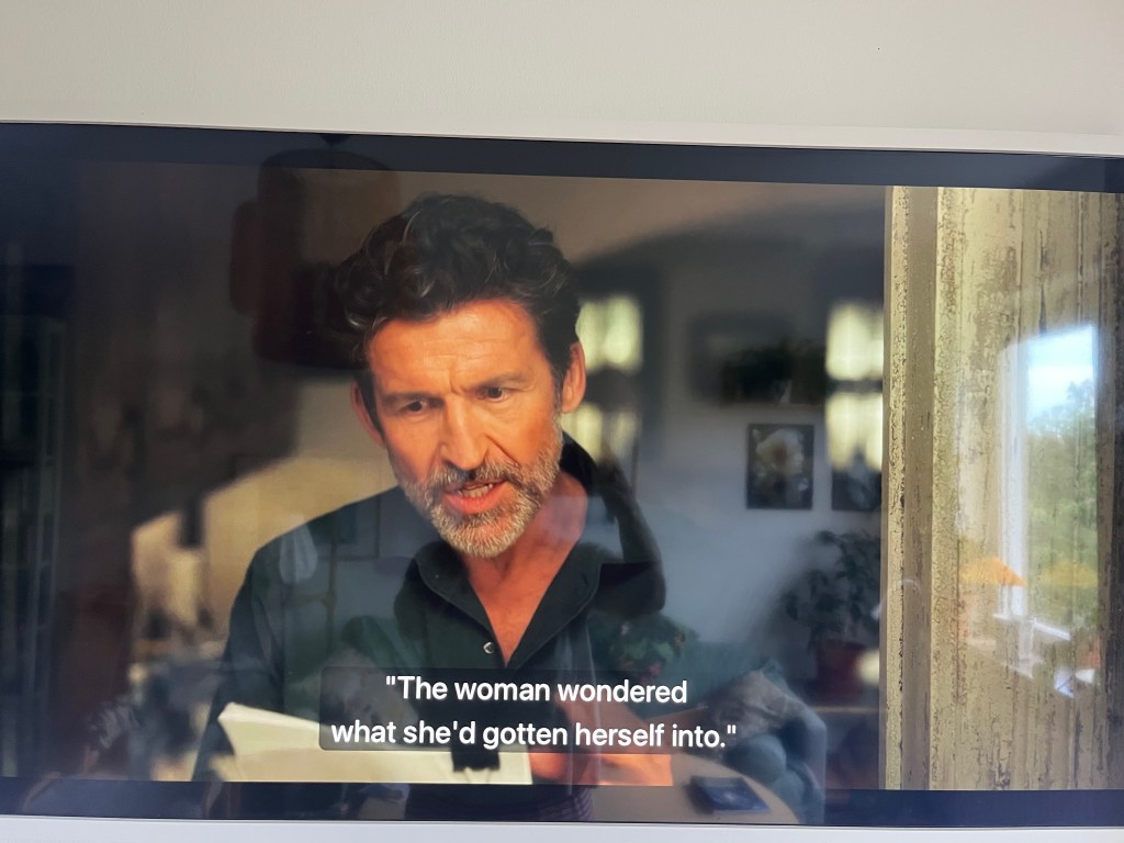 Han citerar hennes inledande mening “The woman wondered what she had gotten herself into” och LYSER UPP. ”It stopped me dead in my tracks!” säger han om dessa tydligen ofattbart geniala ord. Han skiner upp på ett så onaturligt sätt att man tror att skådisen breaks character, och yttrar ett enda ord: ”it’s briljant!!!”