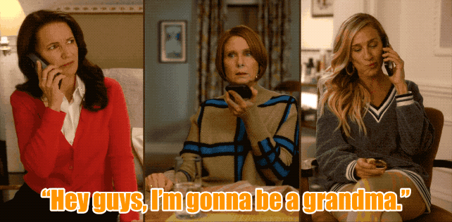 Strunt samma, Brady försöker muta föräldrarna med nån svårt tillagad fisk innan han släpper bomben: han har gjort en tjej, Mia, han inte känner med barn. Steve blir så satans upprörd att Brady stormar ut och Miranda är knappt bättre hon, hon har ju en ny galen personlighet och går till frisören där den höggravida tjejen jobbar. ”Listigt” ställer hon frågor om graviditeten och allt hopp om en ny rimlig tjejkaraktär försvinner när Mia svarar “Honestly, I was gonna get an abortion till I realized the baby would be a double Libra, is that a fucking vibe? ”Tihi såna horoskopdårar är ju Gen Z-tjejerna. Miranda avslöjar vem hon är. Tjejen gör detta: