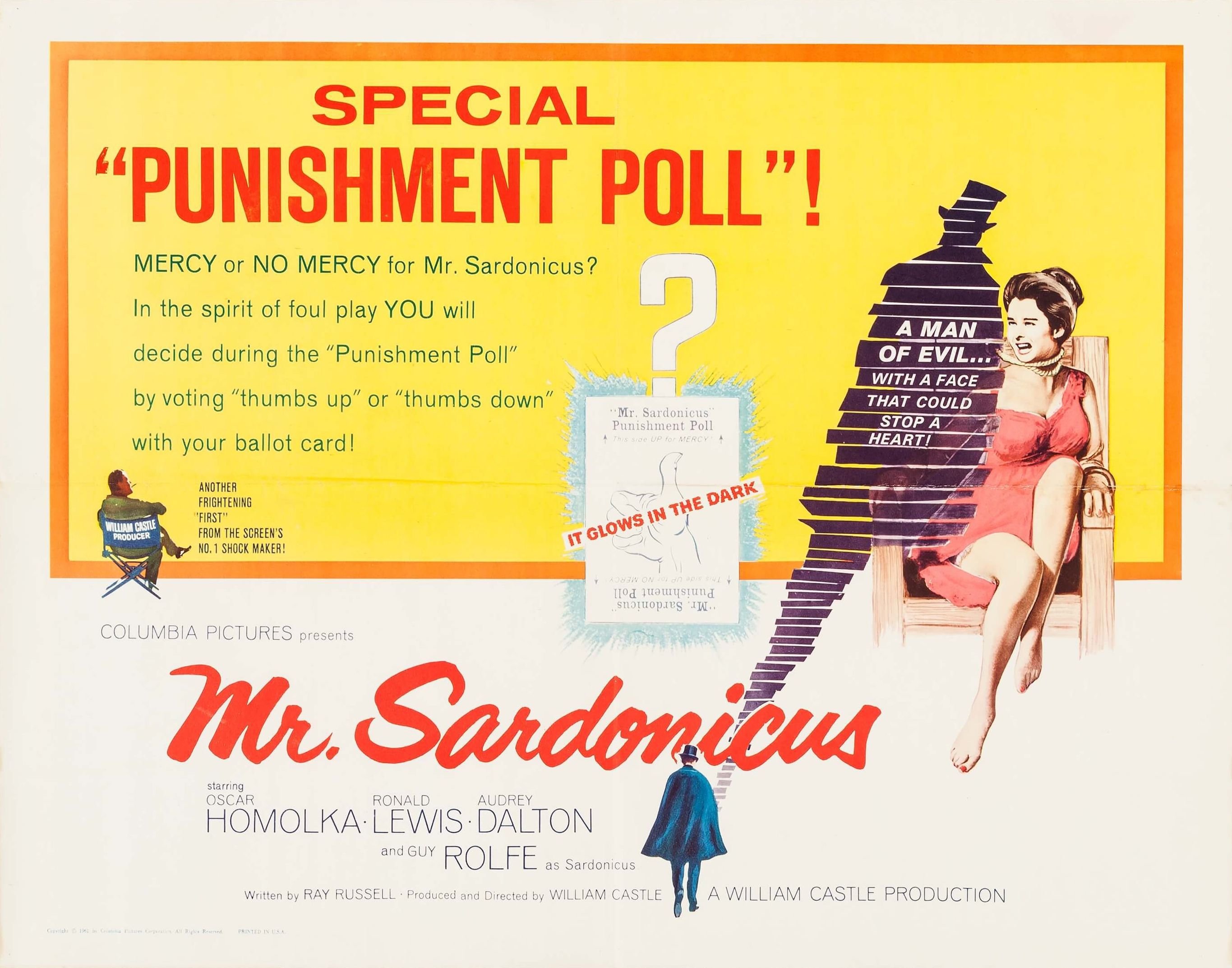 Nytt avsnitt av Salong 3! William Castle-säsongen fortsätter med en för regissören ovanlig period piece, den gotiska thrillern Mr. Sardonicus (1961), i vilken en prominent läkare i viktorianska London reser till det centaleuropeiska landet Gorslava för att hjälpa sin före detta fästmö och hennes nya man, den mystiska baronen Sardonicus, med ett delikat problem. Denna underhållande rysare lanserades med gimmicken ”Punishment Poll”, som lät publiken rösta om antagonistens öde i slutet av filmen — MERCY or NO MERCY?